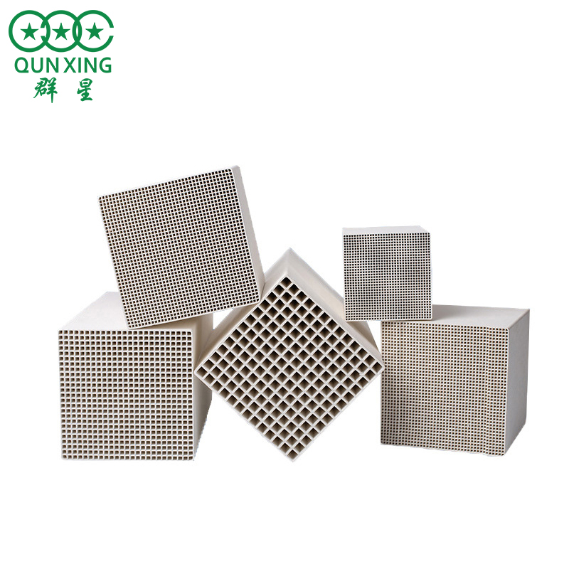 9.1mm的莫來石質(zhì)的可作為脫NOx催化劑載體的基材。草青石質(zhì)蜂窩陶瓷還可以作為柴油機(jī)碳煙過濾器,該過濾器是將蜂窩陶瓷的單元網(wǎng)眼兩端面相互交錯封死,而利用多孔薄壁構(gòu)成的過濾器。當(dāng)氣孔率為35~55%平均孔徑控制在10~35um,其碳煙粒子捕集率可達(dá)40~95%。另外,蜂窩陶瓷還可以作為熱交換器用蓄熱體、熔融金屬過濾器、化工填料窯具及隔熱材料等。